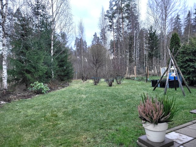 - kaunis hoidettu päätyasunnon piha. Hedelmäpuita ja istutuksia