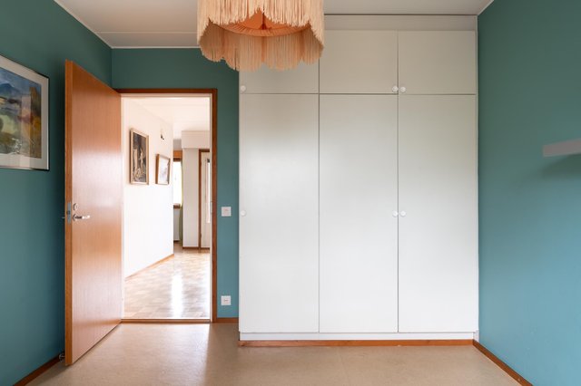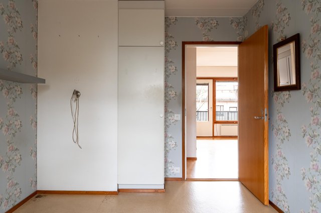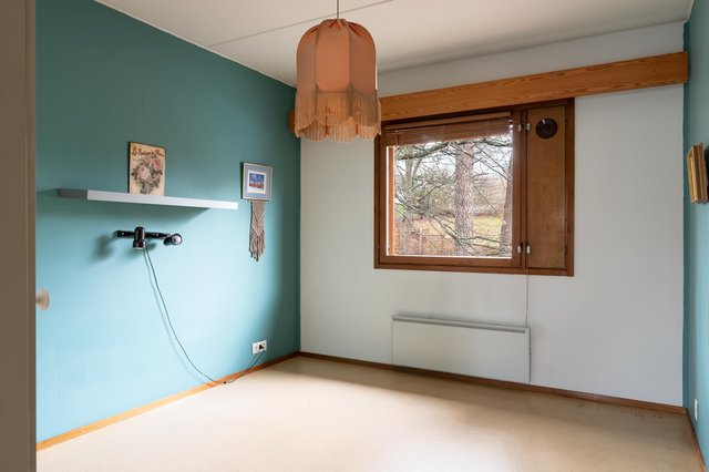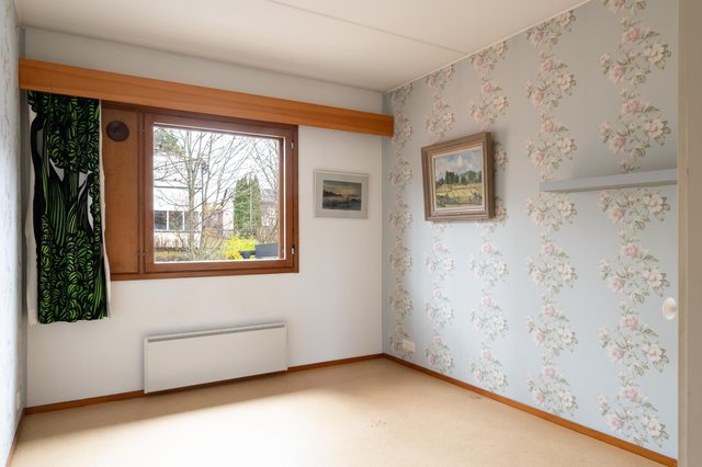 - Kaksi makuuhuonetta, joissa muovimatot. Makuuhuoneissa kiinteät kaapistot. Ikkunat idän suuntaan.