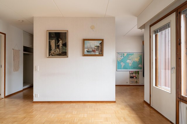 Pienkerrostalon ylimmän kerroksen päätyasunto, jossa on mukavasti yksityisyyttä – seinänaapuri on vain yhdellä puolella. Kodikkaassa läpitalon kolmiossa on kaikki tarpeellinen mukavaan arkeen: kaksi makuuhuonetta, valoisa olohuone, oma sauna ja länteen avautuva parveke. Asunto on siistikuntoinen mutta alkuperäinen; avaamalla keittiön ja olohuoneen välisen seinän avarrat tilaa entisestään.