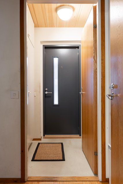 - Eteiskäytävällä naulakkosyvennys. Tuulikaapissa kaapisto.