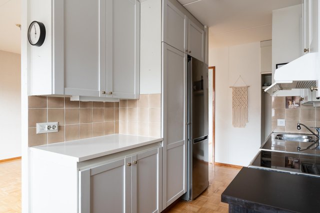 - Keittiön päädyssä ruokailutila. Remontoimalla mahdollisuus avata keittiön ja olohuoneen välinen seinä ja saada tilasta avarampi. Keittiön kaapisto alkuperäinen. Jääkaappi/pakastin LG, uusittu n. 2023. Sähköliesi n. 2015. Liesituuletin 2023->hormiin. Lattia mosaiikkiparketti.