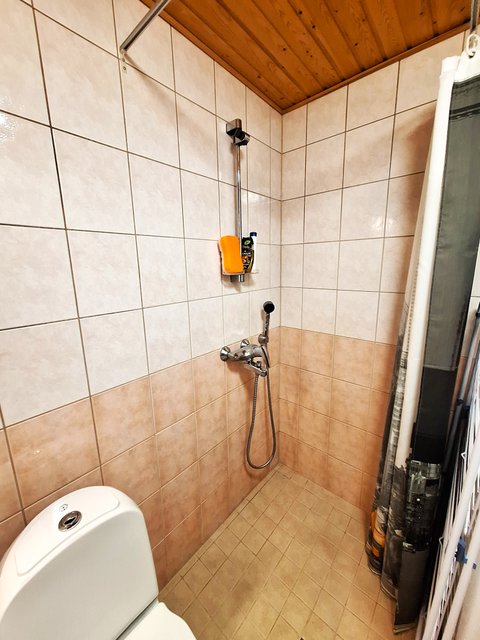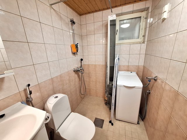 - WC-istuin, suihku, pesukoneliitäntä, peilikaappi, pesuallas, ja allaskaappi