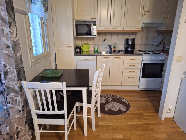 Hyväkuntoinen rivitalokaksio aivan Orimattilan keskustan tuntumassa. Lähin kauppa löytyy 400 metrin päässä ja Prisma on vain kilometrin päässä. Olohuoneen yhteydessä osittain avokeittiö. Olohuoneesta ovi takapihan pienelle terassille. Asumismukavuutta lisää oma sauna ja tilava kylpyhuone.