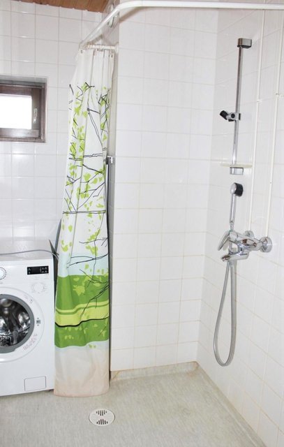 - WC-istuin, suihku, pesukoneliitäntä, peilikaappi, pesuallas, ja rättipatteri