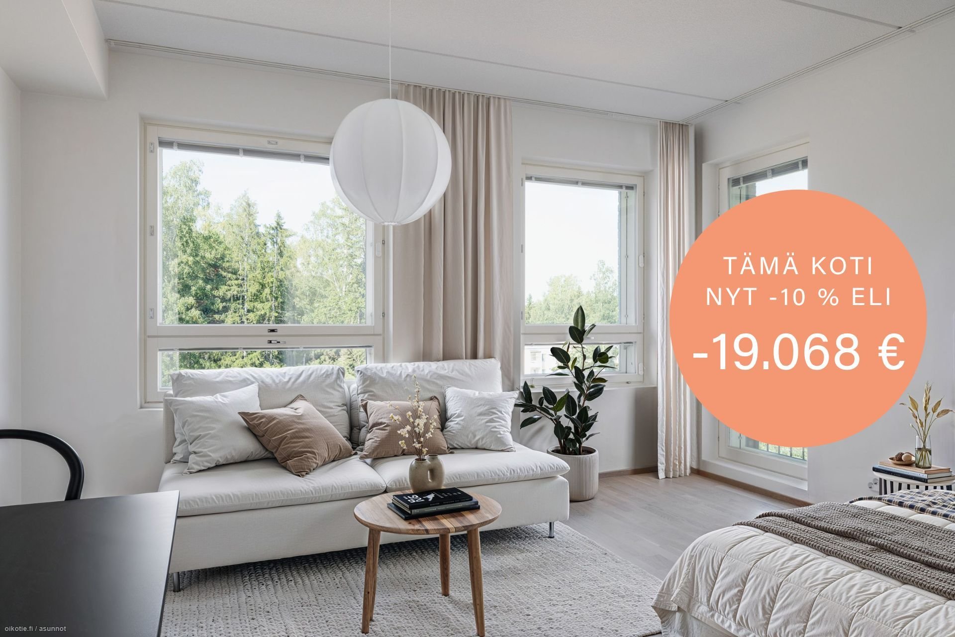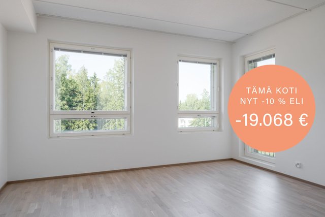 Tämän asunnon velaton kampanjanhinta on nyt 171 612 euroa kun alkuperäinen velaton hinta on 190 680 euroa, kampanjaedun arvo on siis 19 068 euroa.