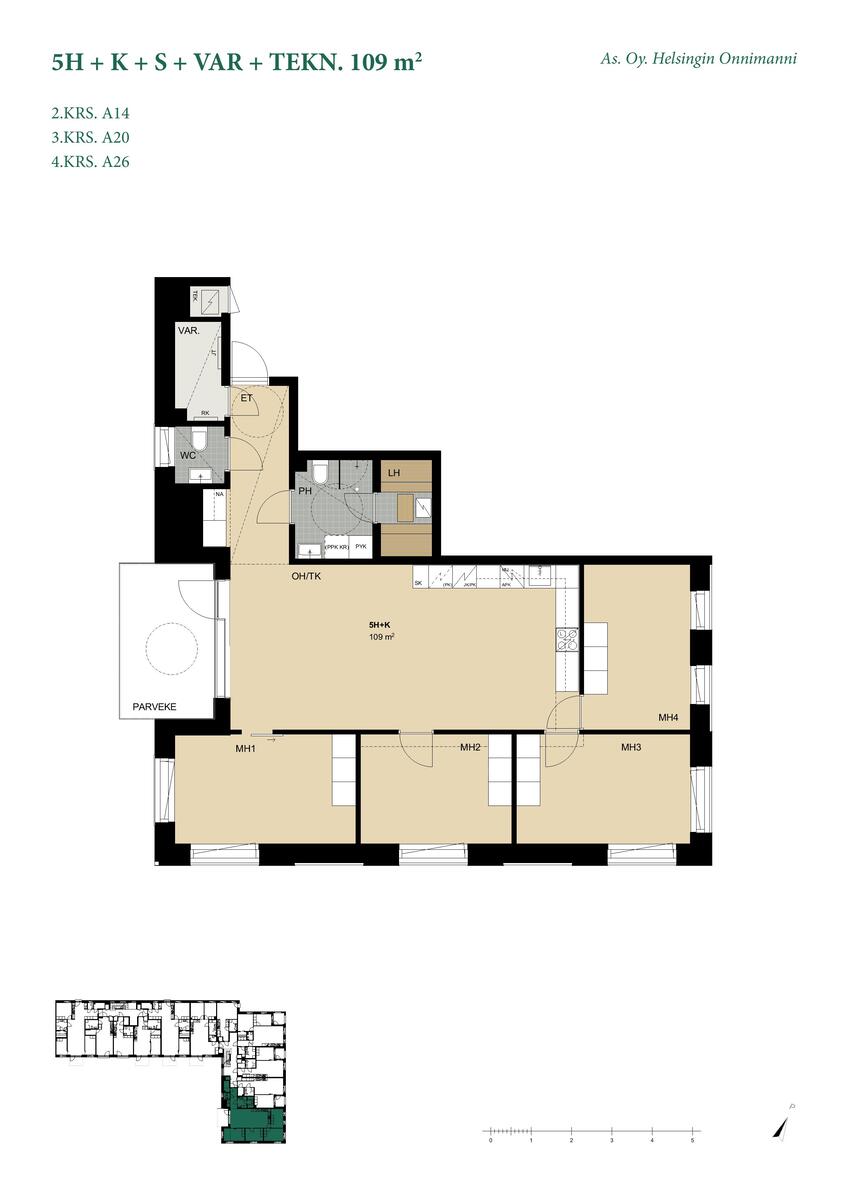 - Huoneiston irtaimistovarasto on asunnon sisäänkäynnin yhteydessä. Kaikissa makuuhuoneissa kiinteät kaapistot.