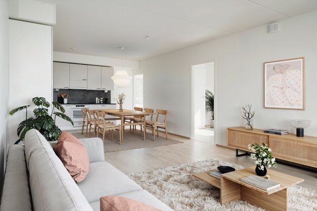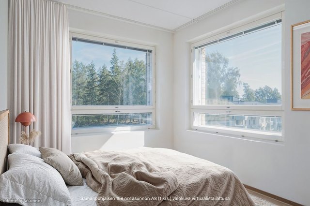 Ihastuttavan vaalea ja tiloiltaan viihtyisän väljä kokonaisuus. Mahtavan iso olohuone/ruokailutila/avokeittiö -kokonaisuus. Neljä makuuhuonetta, joten tilaa on isommallekin perheelle tai työhuoneita tarvitsevalle. Kulmamakuuhuoneissa ikkunat kahteen suuntaan. Tilava kylpyhuone ja ihana sauna, jossa lauteet ovat vastakkain! Kaikissa makuuhuoneissa kiinteät kaapistot ja sisäänkäynnin yhteydessä käytännöllisesti huoneiston varastokomero.