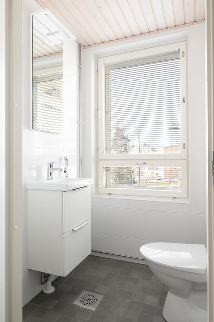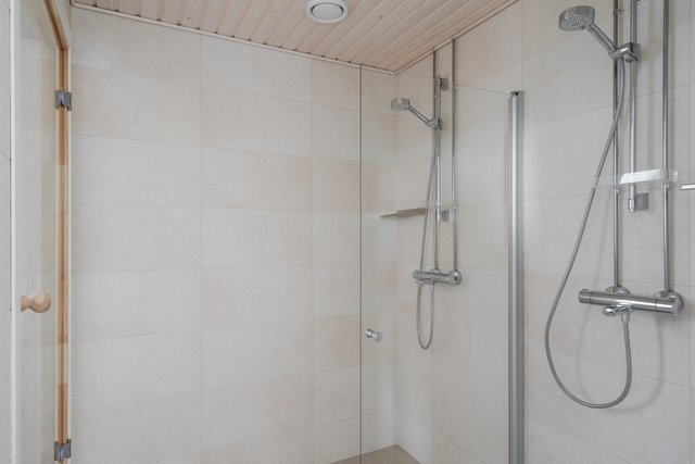 - WC-istuin, suihku, suihkuseinä, pesukoneliitäntä, lattialämmitys, peilikaappi, allaskaappi, ja bidee-suihku