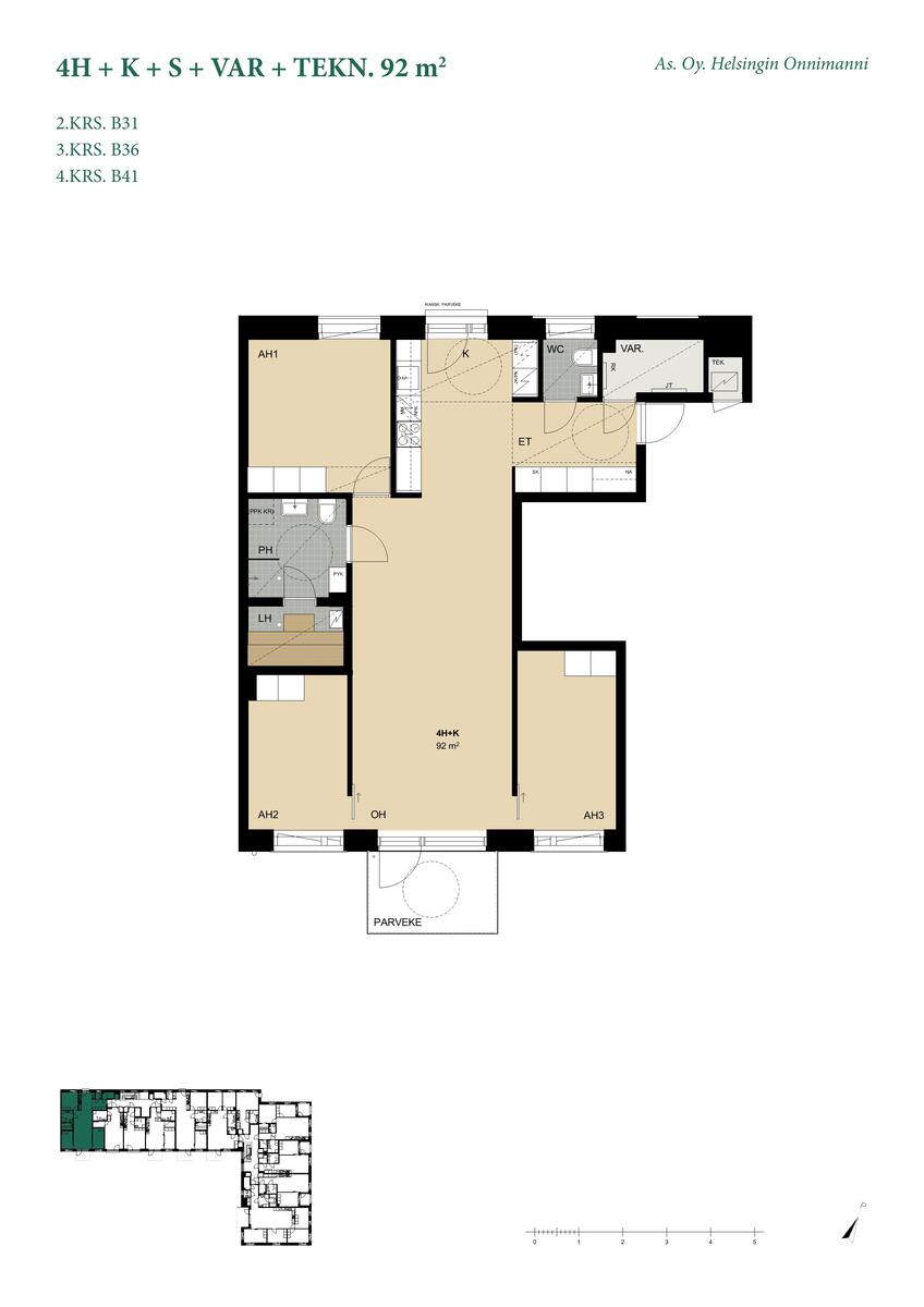 - Yhtiölaina on Päijät-Hämeen Osuuspankista. Taloyhtiölainan korko on sidottu 12 kk Euribor + marginaali 0,95 %. Koron tarkistuspäivä on vuosittain 14.11. Lyhennysvapaan aikana maksetaan pääomavastiketta, joka sisältää vain koron. 1.1.2025 alkaen pääomavastike on 0,41€/osake/kk (määritetty käyttäen euribor 12 kk 2,495 % + marginaali 0,95 %, yht. 3,445 %). Osakkailta aletaan periä n. 11/2026 pääomavastiketta, joka sisältää lainan lyhennystä ja koron. Arvio lyhennyksen aikaisesta pääomavastikkeesta on 0,892 euroa/ osake/ kk. Koron osuus arviossa on 0,41 euroa/ osake/kk, joka on laskettu käyttäen korkona euribor 12 kk 2,495 % + marginaali 0,95 %, yht. 3,445 %. Lainan lyhennyksen osuus arviossa on 0,482 euroa/ osake/ kk. Osakas voi lyhentää osittain tai kokonaan yhtiölainaosuutensa pois milloin vain ja lyhennyksen suorittamisesta Kiinteistö Tahkola veloittaa hinnastonsa mukaisen käsittelymaksun. Hoitovastike on 7,44 euroa/m2/kk ja se sisältää Helsingin kaupungin tontin vuokran. Taloyhtiö vuokraa autopaikat. Vuokra 80 €/kk + mahdollinen sähkönkulutus. Autohallipaikoilla on hidaslatausvalmius. Sähköauton käyttäjän ennakkomaksu on 30 €/kk ja tasaus tehdään todellisen sähkön käytön mukaan.