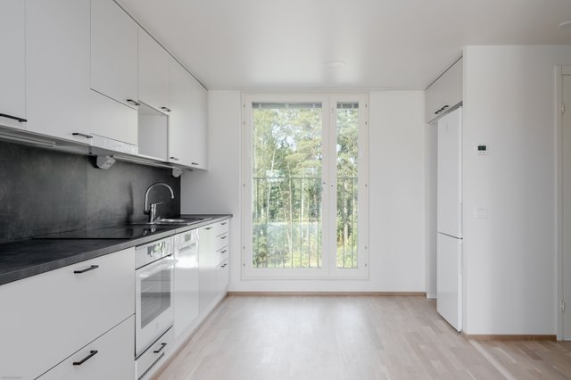 Ihastuttavan vaalea ja tiloiltaan viihtyisän väljä kokonaisuus. Mahtavan iso olohuone/ruokailutila/avokeittiö -kokonaisuus. Kolme makuuhuonetta, jolloin tilaa isommallekin perheelle. Erinomainen pohjaratkaisu, jossa makuuhuoneet on sijoitettu jokainen omaan rauhaansa asunnon kulmiin. Tilava kylpyhuone ja oma sauna, jossa on mukava rentoutua vaikka lenkin jälkeen. Isossa asunnossa on luonnollisesti kaksi vessaa. Kaikissa makuuhuoneissa kiinteät kaapistot; huoneiston irtaimistovarasto käytännöllisesti asunnon yhteydessä.