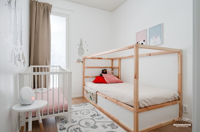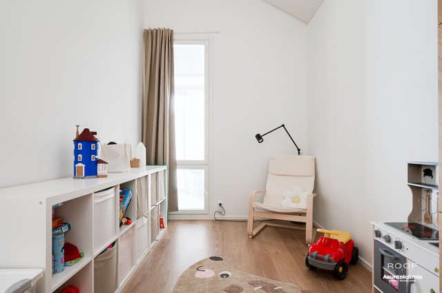 Tervetuloa As Oy Oulun Vaskikartanoon! Kaikki makuuhuoneet ovat riittävän kokoisia ja reilun kokoinen tupakeittiö tuntuu huomattavasti neliöitään suuremmalta korkean huonekorkeuden ansiosta. Asunto poikkeaakin arkkitehtuuriltaan ulkomuodon osalta tavanomaisesta ja suuret ikkunat tuovat valtavasti valoa, joka lisää tilan tuntua entisestään. Keittiöstä löytyy rakennusvaiheessa tehtyjen muutostöiden ansiosta poikkeuksellisen reilusti lasku- ja kaappitilaa sekä täyskorkeat jääkaappi- ja pakastin. Arkea sujuvoittaa erillinen kodinhoitohuone vesipisteineen ja kaksi wc:tä.