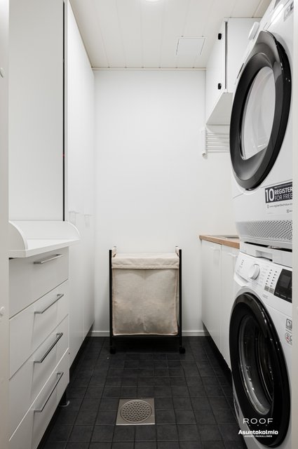 - Pesukoneliitäntä, tila pesutornille, pesuallas, ja lattiakaivo