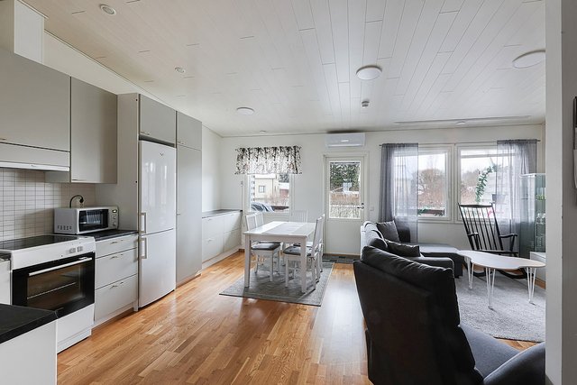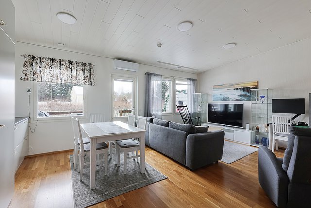 - Olohuone ja keittiö terassille/puutarhaan. Makuuhuone sisäpihalle.