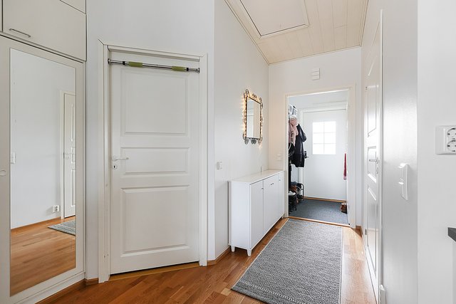 - Peiliovellinen (liukuovi) kaappi makuuhuoneessa, Irrallinen ja voi jäädä kaupan yhteydessä. Keittiöön ja pesuhuoneeseen lisätty kaapistoja. Lisäksi käyttöullakko, johon kulku eteisestä (alaslaskettavat rappuset).
