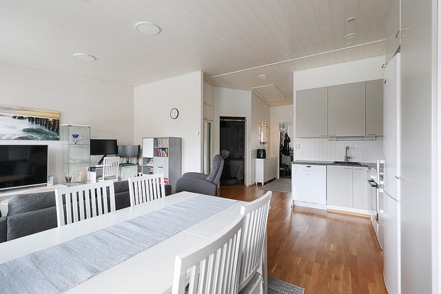 Asunnossa on parkettilattiat ja moderni keittiö, jossa on uusittu induktioliesi. Kylpyhuoneessa on lattialämmitys ja sauna tarjoaa rentouttavat hetket LED-valaistuksella ja tervaleppälauteilla. Runsaasti säilytystilaa mm. vaatehuone, peiliovellinen kaappi makkarissa sekä käyttöullakko. Myös keittiöön lisätty kaappeja.