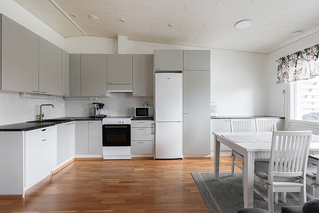 - Jääkaappipakastin, astianpesukone, liesituuletin, ja liesi (Induktioliesi, uusittu 2025)