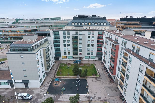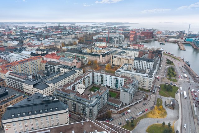 Sijainti on erinomainen: kaikki tarvittavat palvelut, kahvilat, ravintolat sekä koulut ja päiväkodit ovat lähellä. Lisäksi hyvät liikenneyhteydet takaavat sujuvan kulkemisen. Ratikkapysäkki talon vieressä. Pääset myös kulkemaan sujuvasti omalla autolla välttäen keskustan ruuhkat sillä sijainti Ruoholahden ja Länsiväylän läheisyydessä on erinomainen.