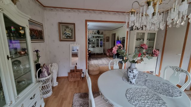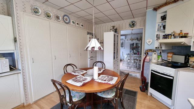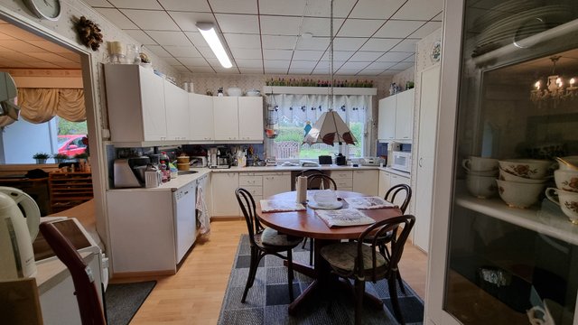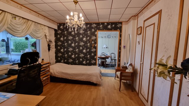 - Alakerran ruokailuhuone ja parturitila soveltuvat myös makuuhuoneiksi. Yläkerrassa 2 makuuhuonetta (yläkerran huoneet eivät täytä asuinhuoneelle asetettuja vaatimuksia).