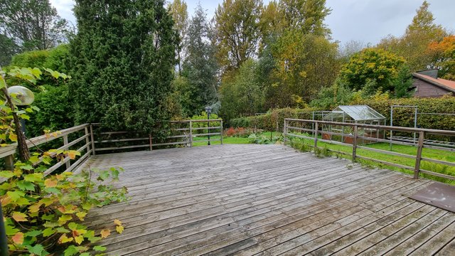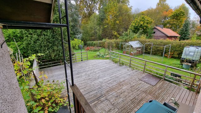 - Tilava takaterassi ilta-auringon puolella.