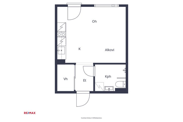 - - Kaapistot - Astianpesukone (integroitu) - Jääkaappi pakastinlokerolla (intregroitu) - Liesitaso - Liesituuletin Lattia: parketti Seinät: maalattu