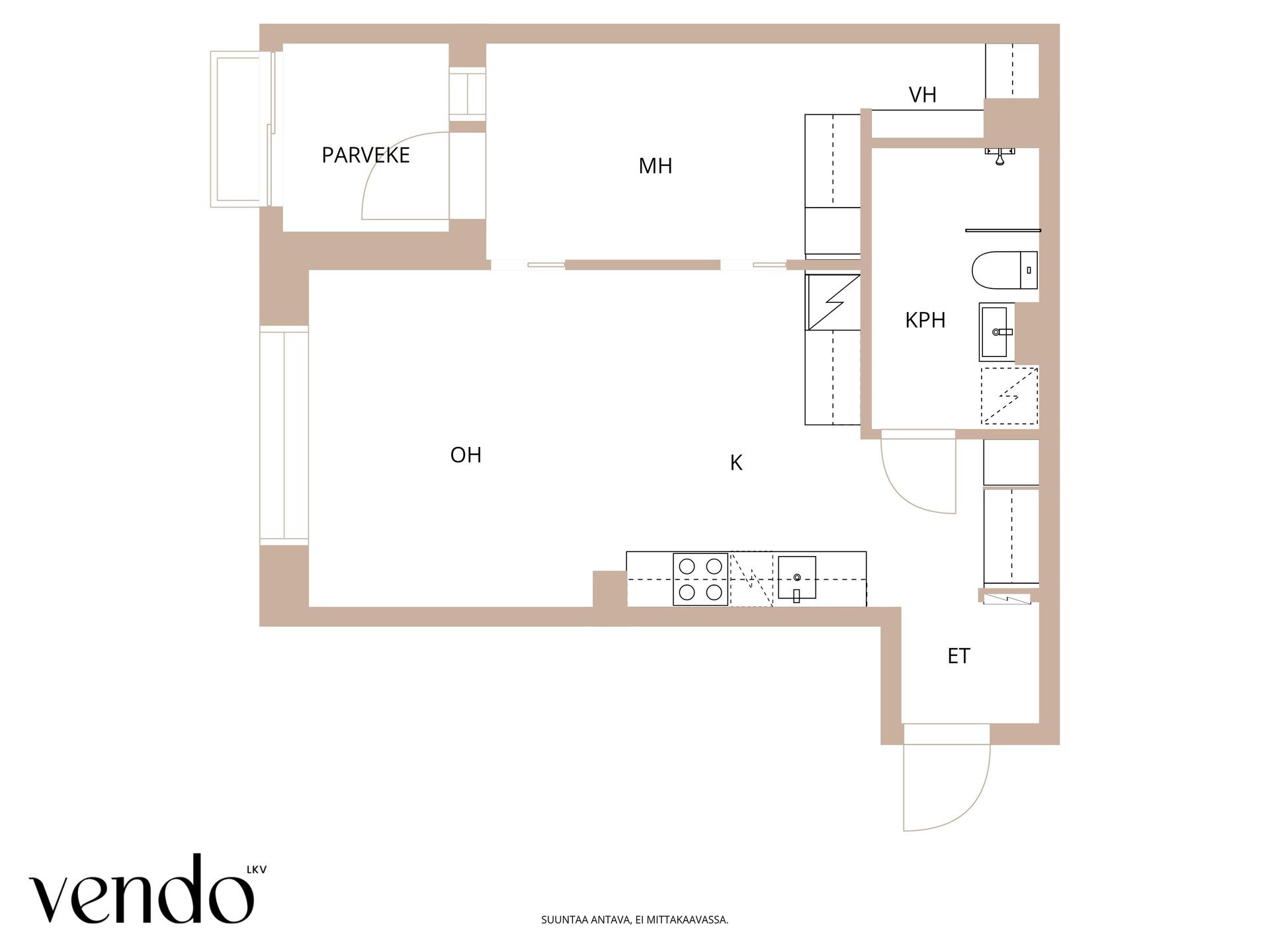 Asunnon isossa keittiössä on paljon laskutilaa, ja se on varusteltu integroiduilla kodinkoneilla , mikä tekee ruoanlaitosta nautinnollista. Olohuoneen ja makuuhuoneen lattiat ovat kaunista parkettia, ja kylpyhuoneessa on mukavuuslattialämmitys, joka tuo arkeen ripauksen ylellisyyttä.