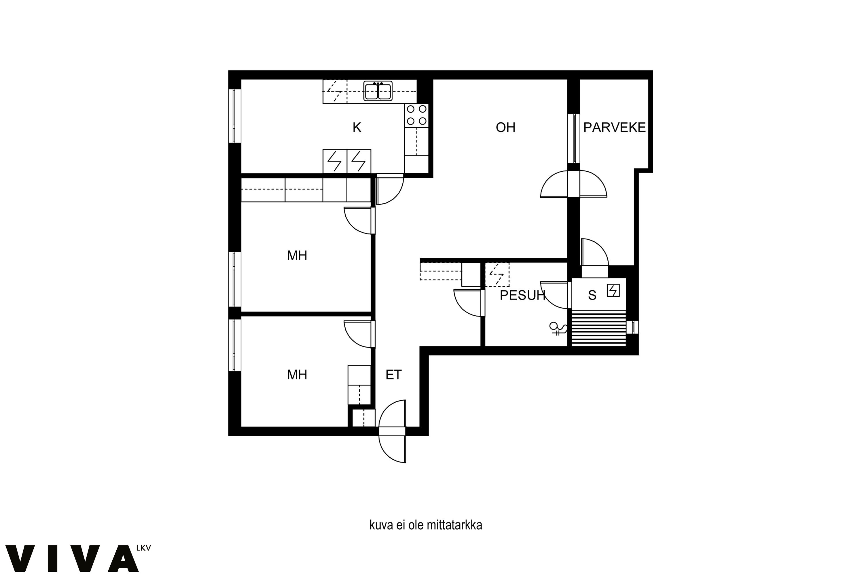 - Ei tarkistusmitattu. Pinta-alat saattavat tämän ikäisissä kohteissa (yhtiö rekisteröity ennen 01.01.1992) poiketa olennaisestikin asuinrakennusten nykyisten mittaustapojen ja standardien (SFS 5139) mukaan laskettavasta asuintilojen pinta-alasta. Pinta-ala voi siis olla edellä mainittua pienempi tai suurempi.