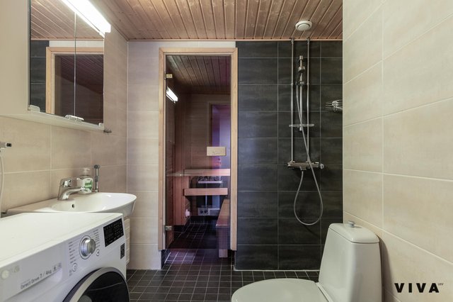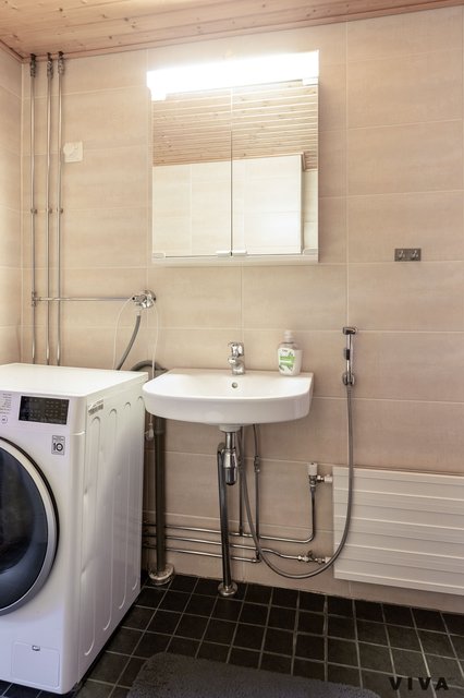 - Suihku, peilikaappi, ja pesukoneliitäntä