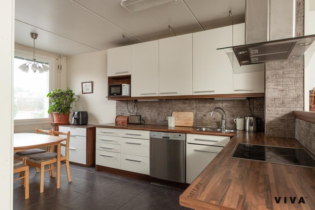 Kaarnatiellä Malminkartanossa nyt myynnissä tämä viihtyisä kolmio, joka tarjoaa mukavan kodin monenlaisiin tarpeisiin. Asunto on ensimmäisessä kerroksessa, mikä on hissittömyyden johdosta erityisen kätevää. Terassi avautuu etelään ja tuo valoa ja avaruutta olohuoneeseen.