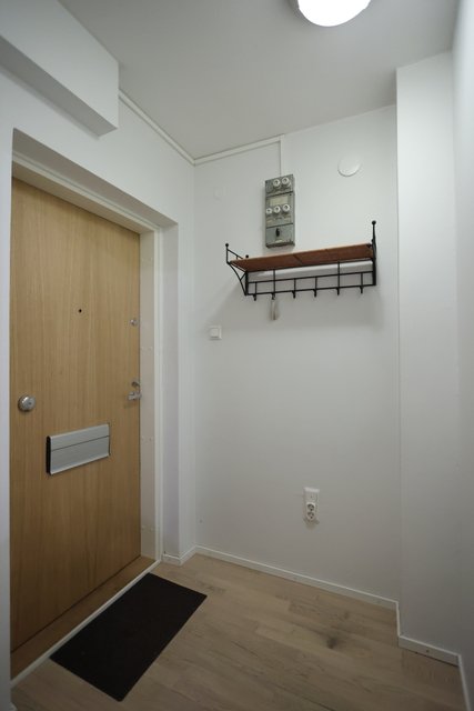 - Eteinen jossa naulakko. LATTIA: parketti SEINÄT: maali