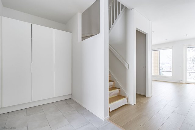 Kaksikerroksinen koti on uutta vastaavassa kunnossa ja pohjaratkaisultaan toimiva. Sisääntulokerroksessa sijaitsevat keittiö-olohuonetila, erillinen wc ja terassi. Yläkerrassa on kolme makuuhuonetta, kylpyhuone ja sauna sekä parveke.. Kodissa on vesikiertoinen lattialämmitys, ja koneellinen ilmanvaihto lämmöntalteenotolla.