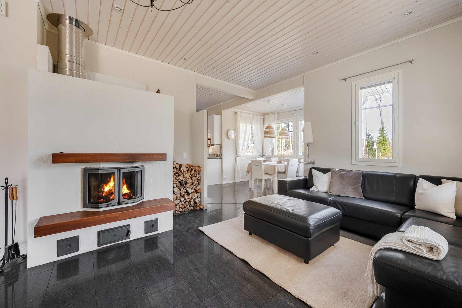 Alakerrassa sijaitsee moderni keittiö joka yhdistyy olohuoneeseen varaavan takan äärelle. Tilavat pesutilat, kodinhoitohuone ja kulku suurelle terassille tekevät arjesta sujuvaa. Yläkerrassa kolme erittäin tilavaa makuuhuonetta, oma kylpyhuone ja runsaasti säilytystilaa. Parvekkeellinen päämakuuhuone avautuu pariovien takaa – näkymä pihapiiriin ja peltomaisemiin on henkeäsalpaava.
