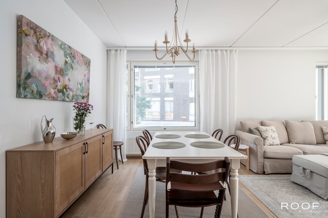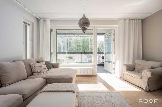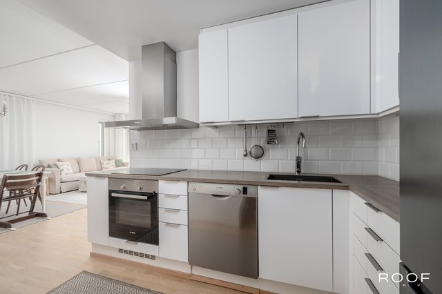 Tässä vuonna 2017 valmistuneessa yhtiössä sijaitsevassa kodissa on toimiva ja selkeä pohjaratkaisu. Asunnon sydämen muodostaa olohuoneen ja ruokailutilan yhdistelmä, josta on käynti lasitetulle parvekkeelle. Parveke tarjoaa mukavasti lisätilaa arkeen ja mahdollisuuden nauttia ulkoilmasta pitkälle syksyyn.