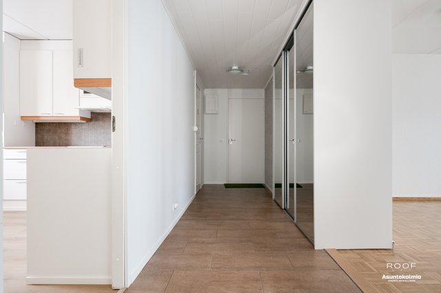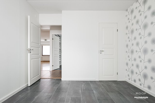 Tämä avarapohjainen asunto sijaitsee ensimmäisessä kerroksessa. Kylpyhuone ja eteiskäytävän pinnat on remontoitu vuonna 2023 aikana, samoten myös osa keittiön kaapistoista. Huoneet ovat ajan rakennustapaan peilaten mukavan tilavat, ja säilytystilaakin on runsaasti kaapistojen, vaatehuoneen ja huoneistokohtaisen varaston ansiosta. Suuresta olohuonetilasta on käynti lasitetulle parvekkeelle, ja asumismukavuutta lisää oma sauna. 2 WC:tä helpottavat myös lapsiperheen arkea huomattavasti.