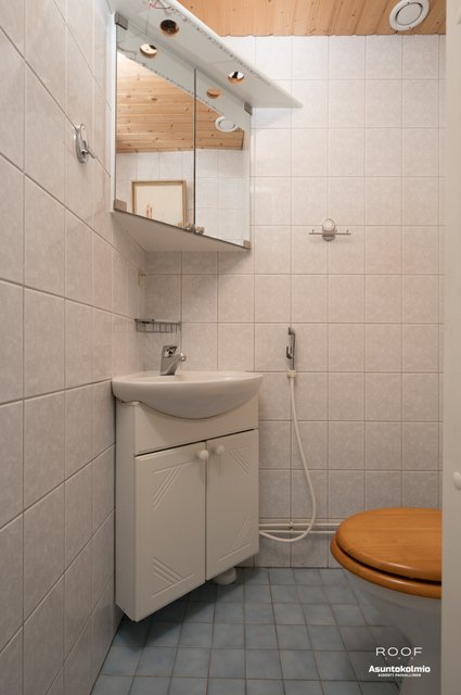 - Varustus: Suihku, peilikaappi, pesukoneliitäntä, lattialämmitys, wc-istuin. Kylpyhuone uusittu 2023.