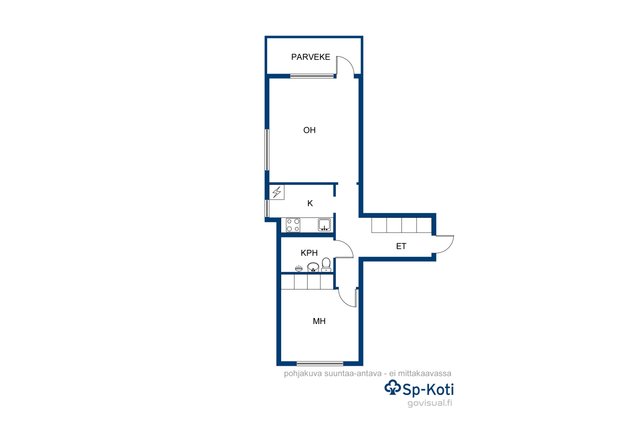 - Pinta-aloja ei ole tarkistusmitattu, tämän vuoksi pinta-alat saattavat poiketa olennaisestikin nykystandardien mukaan laskettavasta huoneistoalasta. Todellinen pinta-ala voi siten olla esitteessä ilmoitettua suurempi tai pienempi.