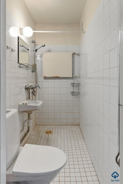 - WC-istuin, suihku, pesukoneliitäntä, peili, ja pesuallas