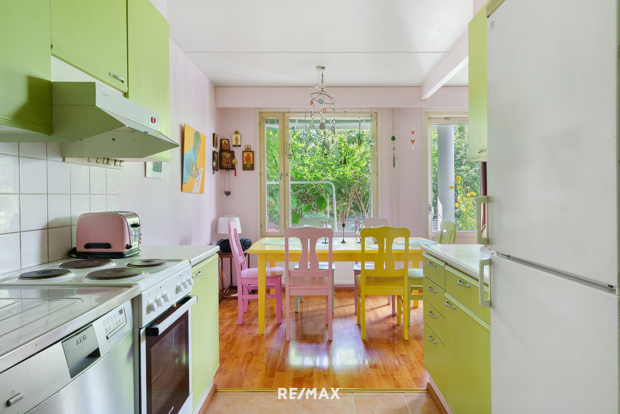 Tämä rakkaudella pitkään pidetty, värikkääseen Boho-henkeen maalattu 92 m2 esteetön perheasunto sijaitsee Helsingin Vuosaaressa vain kivenheiton päässä upeista merenrannoista ja kauppakeskus Columbuksen kattavista palveluista sekä metrosta.