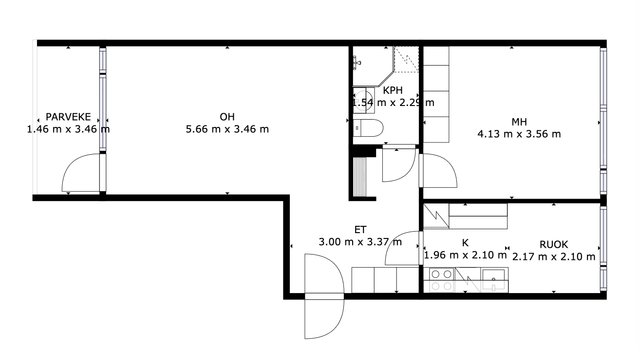 - Yhtiöjärjestyksen mukainen, Isännöitsijäntodistuksen mukainen, (Pinta-ala ei ole tarkistusmitattu ja todellinen pinta-ala voi olla suurempi tai pienempi, kuin ilmoitettu)