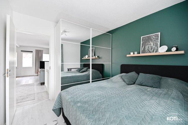 Hyväkuntoinen ja selkeälinjainen rivitalon päätyhuoneisto rauhallisella Tuomarilan pientaloalueella.