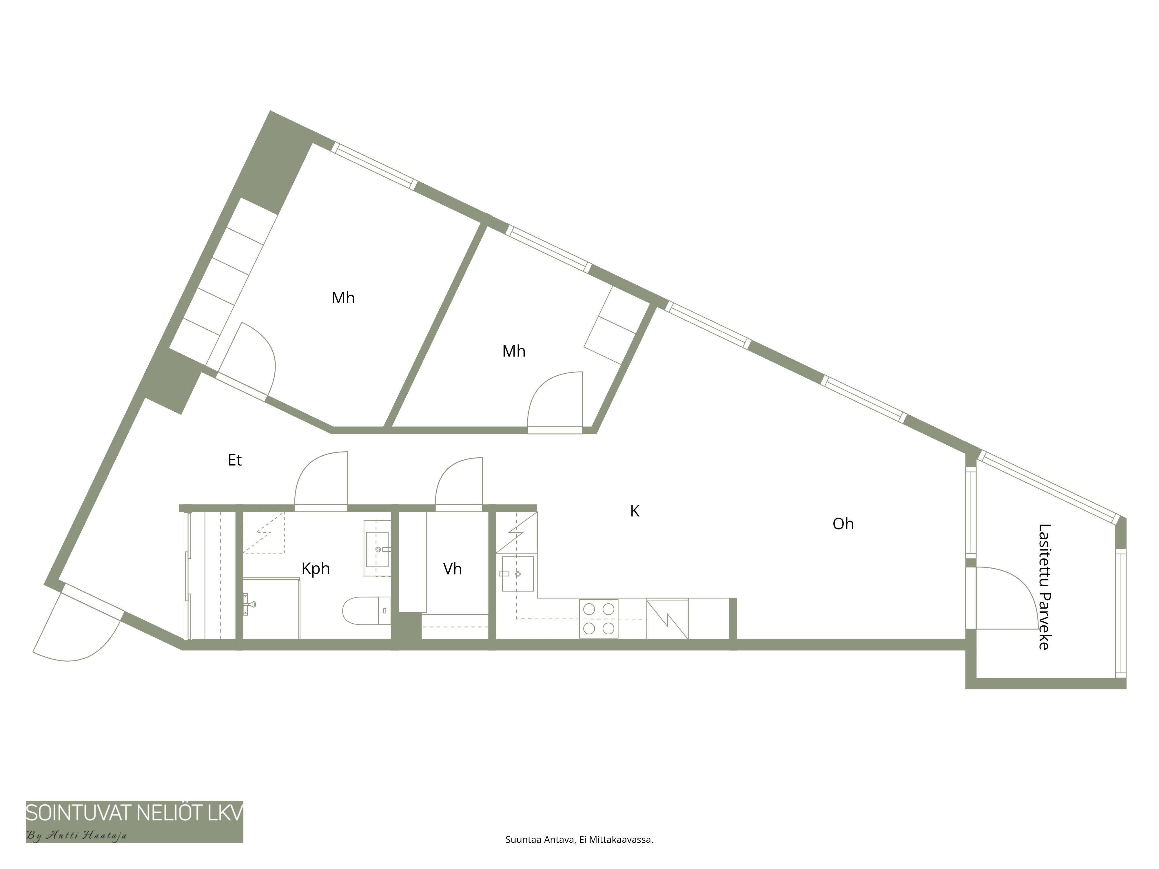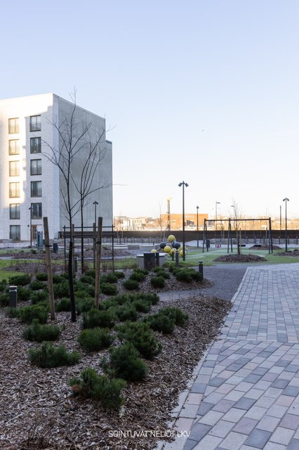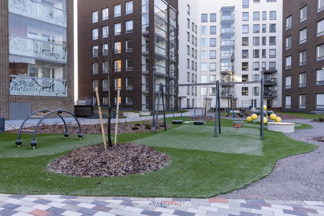- Hissi, kaksi saunaa, parkkihalli, urheiluväline- ja lastenvaunuvarasto, pesutupa ja kuivaushuone, kerhotila, irtainvarastot.