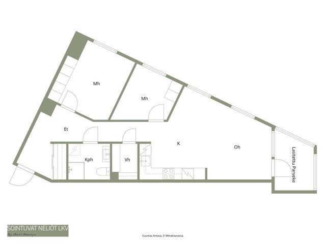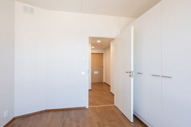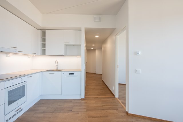 Kodin keskiössä on runsaalla ikkunapinnalla toteutettu olohuone-avokeittiö, jonka jatkeena on tilava parveke. Lasituksen ansiosta parvekkeella voi nauttia raikkaasta meri-ilmasta kevään ensisäteistä pitkälle syksyyn. Päämakuuhuone on reilunkokoinen ja varustettu vaatekaapistolla. Myös kompaktimmasta makuu-/työhuoneesta löytyy kiintokaapisto. Säilytystilojen riittävyyden takaa vaatehuone sekä huoneistolle kuuluva lämmin irtainvarasto. Kaunis ja moderni kylpyhuone on suunniteltu toiminnallisesti, ja siellä on paikka myös pesutornille. Mainion kokonaisuuden kruunaavat riittävät eteistilat sekä asumismukavuutta lisäävä lattialämmitys viilennysominaisuudella.