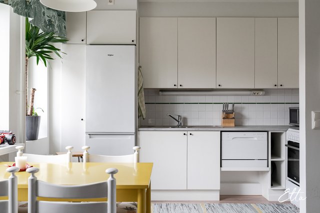 - Jääkaappipakastin, liesituuletin, ja astianpesukone