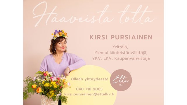 Tätä asuntoa myy Kirsi Pursiainen, Yrittäjä, Ylempi kiinteistönvälittäjä, YKV, LKV, Kaupanvahvistaja