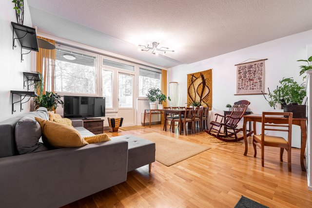 Rakennus on peruskorjattu 2003, joten se on nykyaikainen, mutta ihanilla 60-luvun yksityiskohdilla säilytetty. Jo rappukäytävässä on ainutlaatuinen ja kotoisa tunnelma. Kalevalankadun rauhallisella alueella Linnanpellolla sijaitsee tämä valoisa ja tilava 64 neliömetrin kaksio, joka tarjoaa loistavat puitteet mukavaan asumiseen. Tämä ensimmäisen kerroksen asunto on osa omalla tontilla olevaa Asunto Oy Kuopion Kalevalankatu 47 -taloyhtiötä, joka koostuu kahdesta rakennuksesta.
