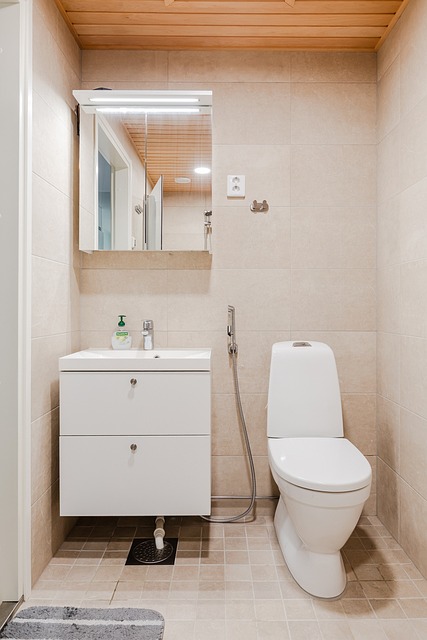- Peilikaappi, suihku, wc-istuin, allaskaappi, suihkuseinä, ja lattialämmitys
