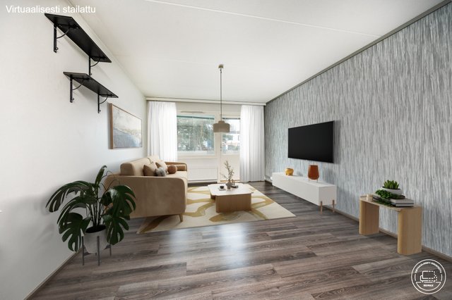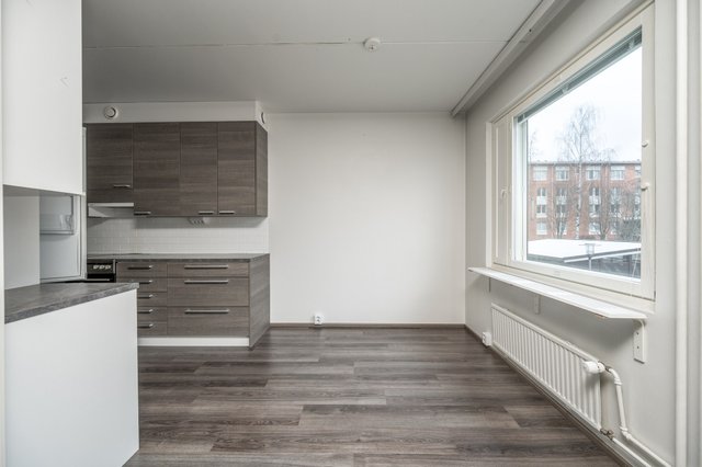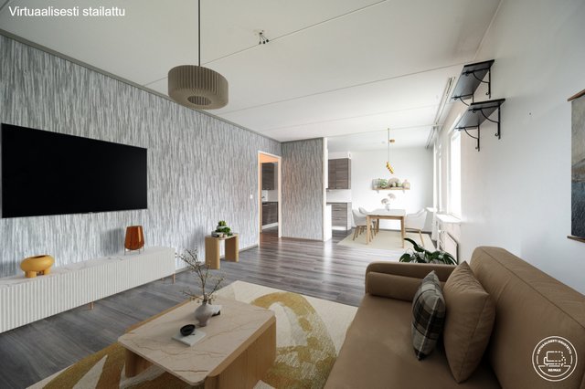 Asunto sijaitsee hissitalon ensimmäisessä (käytännössä 2. kerros) kerroksessa. Pohjaratkaisu on toimiva. Keittiö on uusittu v. 2018. Ruokailutila on kätevästi heti keittiön vieressä ja yhdistyy luontevasti olohuoneeseen muodostaen näin avaran ja valoisan kokonaisuuden. Olohuoneesta käynti lasitetulle parvekkeelle. Kylpyhuone on remontoitu v. 2014 linjasaneerauksen yhteydessä.