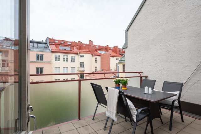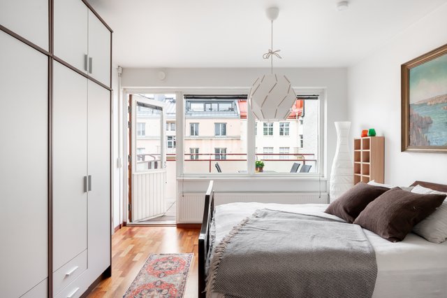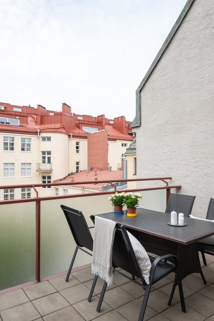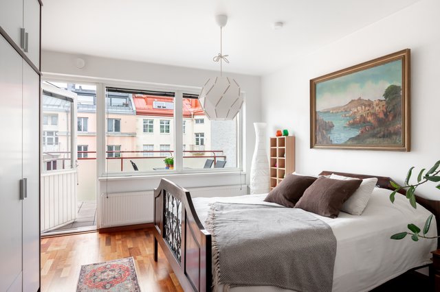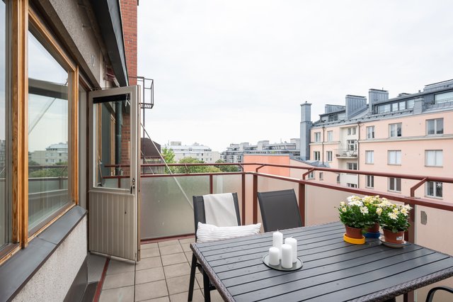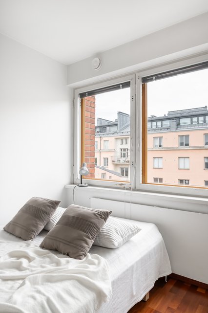 Asunnossa on kaksi makuuhuonetta rauhalliselle sisäpihalle päin, joista toisen yhteydessä on vaatehuone ja käynti parvekkeelle. Parveke on tilava ja osittain suojaisa - mainio paikka nauttia aamukahvit tai kesäpäivän rauhasta kaupungin kattojen yllä.
