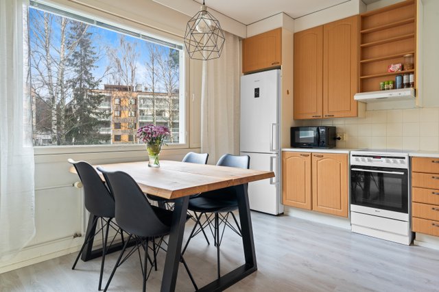 Tämä tilava ja toimivapohjainen 64 m² kaksio tarjoaa helppoa ja viihtyisää asumista. Kodissa on erillinen, hyvin varusteltu keittiö, joka tekee arjesta sujuvaa. Iso vaatehuone tuo runsaasti säilytystilaa ja auttaa pitämään kodin siistinä.