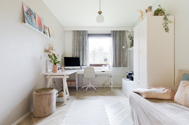 - Lattiapinnat laminaattia, seinäpinnat tapetoitu/ maalattu.