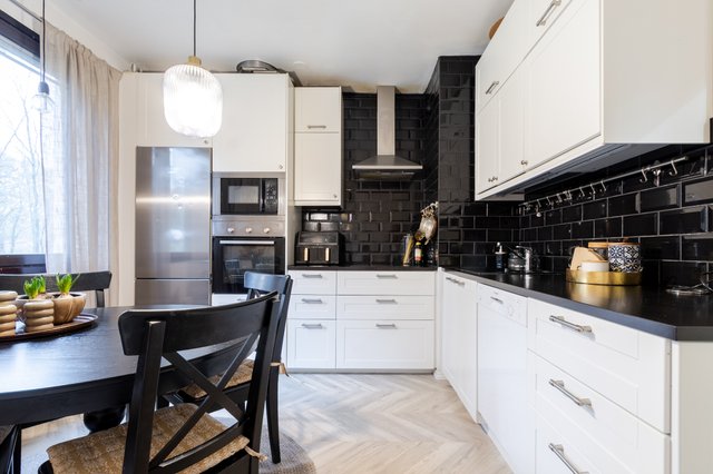 - Keittiö on remontoitu vuonna 2016. Varustus: keraaminen liesi, liesituuletin, jääkaappipakastin, erillisuuni, integroitu mikro, astianpesukone, kiinteät valaisimet ja kaapistot. Lattiapinnat laminaattia, seinäpinnat tapetoitu.